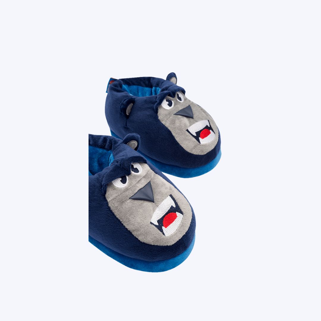 Pantufa infantil em pelúcia. Formato 3D de gorila com rosto bordado, aplique de orelhas nas laterais. Solado macio e confortável e forro em tecido macio.