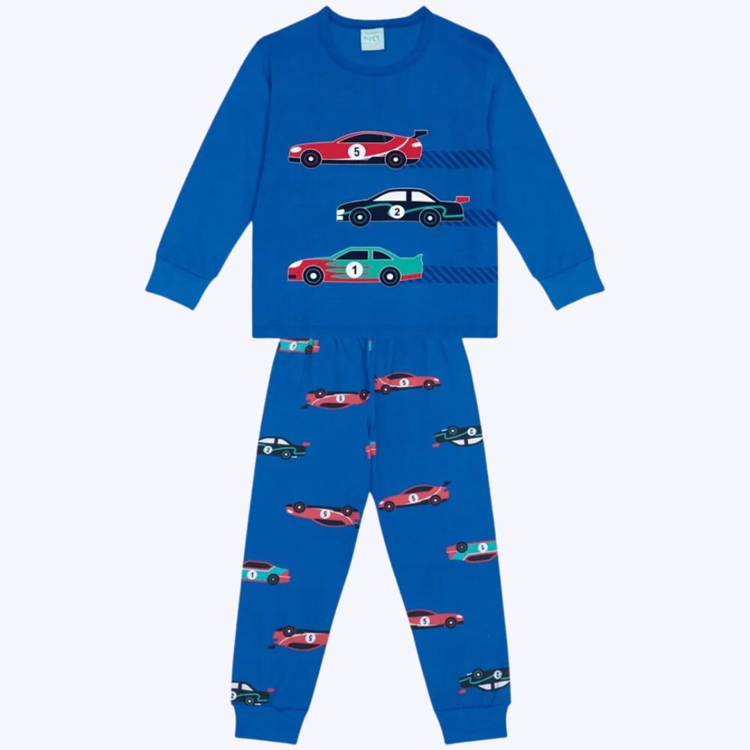 A camiseta manga longa vem com uma estampa localizada emocionante de carros de corrida, adicionando um toque de velocidade e adrenalina ao pijama. O diferencial está no efeito brilhante da estampa no escuro, criando uma experiência mágica e divertida para as crianças. Além disso, possui gola redonda com acabamento em debrum, mangas longas e punhos também com acabamento em debrum, proporcionando um ajuste confortável e cheio de charme.