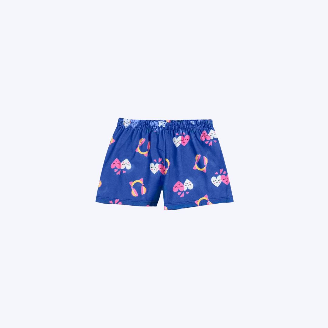 O conjunto harmonioso, com blusa e short na mesma estampa de corações e fones de ouvido, cria um visual divertido e delicado, perfeito para iluminar os sonhos da sua pequena.