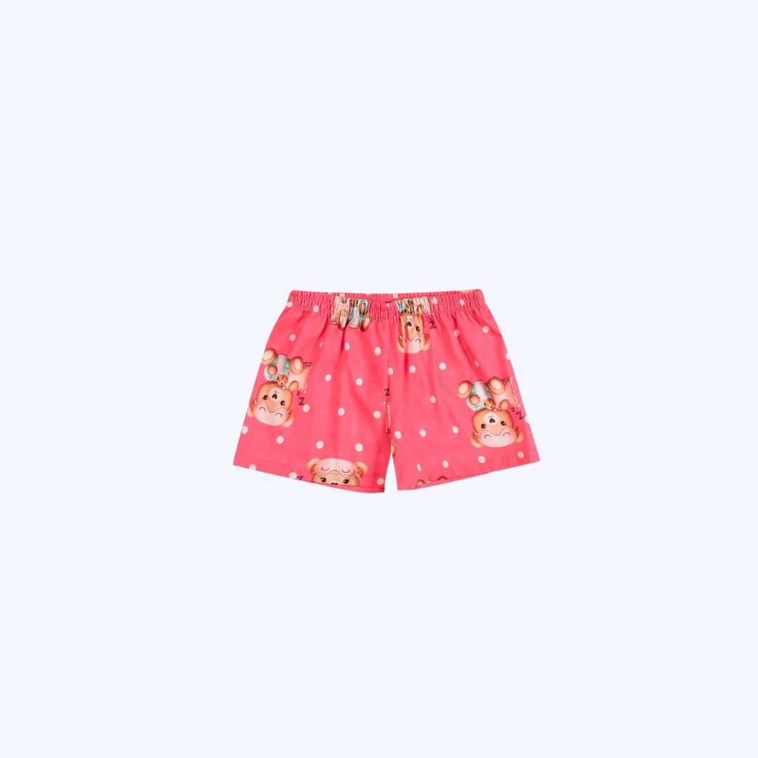 Confeccionado em meia malha 100% algodão, o Pijama Brilha No Escuro Manga Curta Kyly proporciona um conforto absoluto e um toque macio na pele, ideal para as noites de sono das pequenas. Sua modelagem soltinha garante total liberdade de movimento, enquanto a blusa com decote em debrum e o short com elástico rebatido na cintura oferecem um ajuste seguro e confortável. O grande destaque é a estampa de ursinho dormindo sobre uma nuvem, que ganha vida com a técnica de efeito glow que brilha no escuro, transformando a hora de dormir em um momento mágico e divertido.
