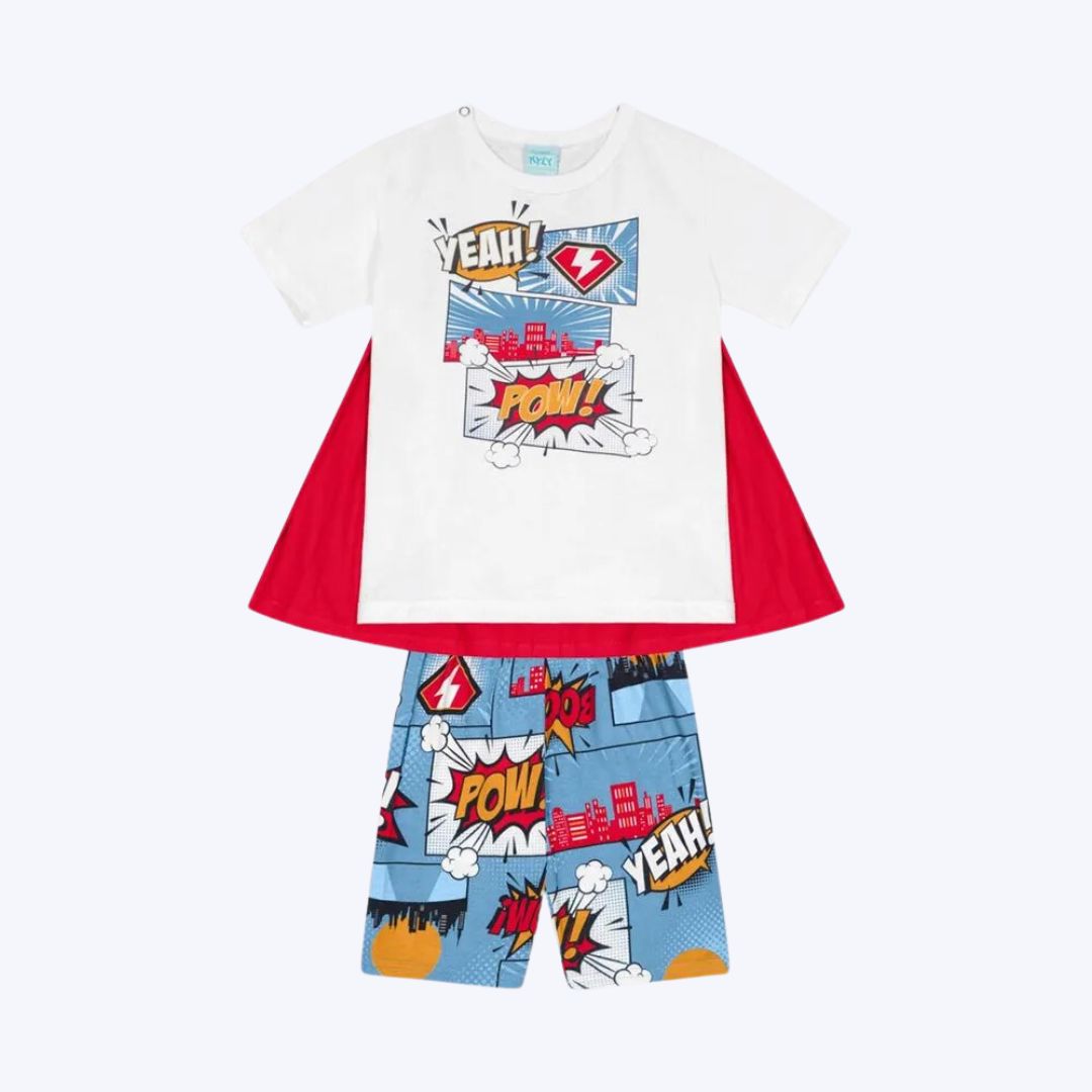 Transforme a hora de dormir do seu pequeno em uma emocionante aventura com o Pijama com Capa Herói da Kyly. Projetado para garantir conforto absoluto e muita diversão, este pijama é a escolha perfeita para os meninos que adoram se imaginar como heróis em suas próprias histórias.