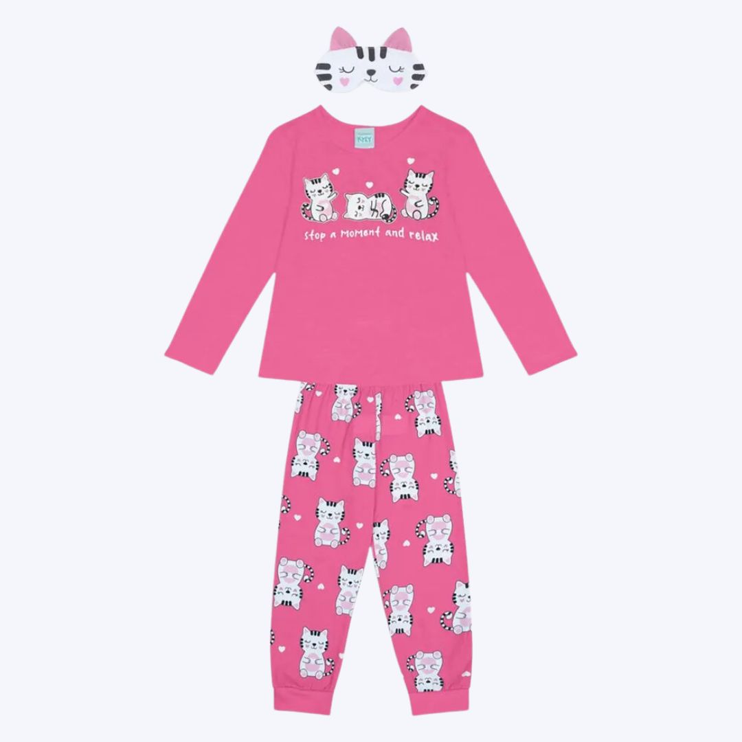 O Pijama com Máscara Infantil Feminino da Kyly é perfeito para proporcionar conforto e diversão às pequenas durante o sono.