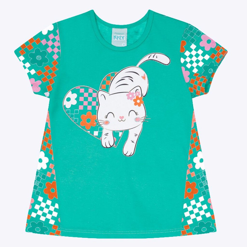 - Design Encantador: A camiseta apresenta uma adorável estampa de gatinha, que traz um toque de fofura e diversão. A estampa é projetada para brilhar no escuro, adicionando um elemento mágico que encanta as pequenas e torna a hora de dormir ainda mais especial.