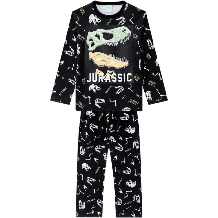 Nome do Produto: Pijama Esqueleto de DINO que Brilha no Escuro Infantil Masculino