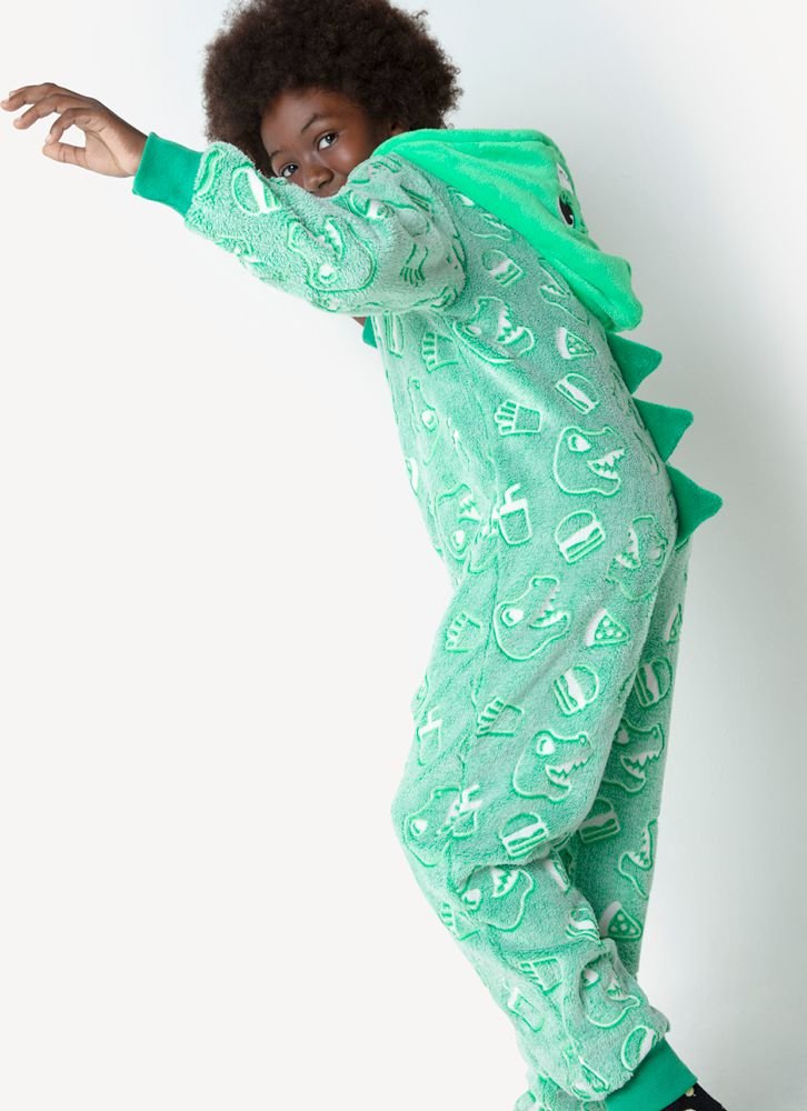 Pijama Macacão Infantil Masculino Brilha No Escuro da marca Puket, fabricado na China, confeccionado em tecido de qualidade trazendo um maior conforto a criança, com um toque macio. Pijama Macacão com fechamento frontal por zíper, manga e calça com punhos, estampa de dinossauros, hambúrgueres e batata frita. Modelo de pijama super confortável para as noites ficarem mais divertidas, perfeito para uma festa do pijama com os amigos. Para ativar efeito brilha no escuro,exponha o produto diretamente a uma luz natural ou artificial. Na Se-An Junior Moda Infantil você encontra toda linha de pijamas Puket, o pijama 030402475 está disponível na cor verde.