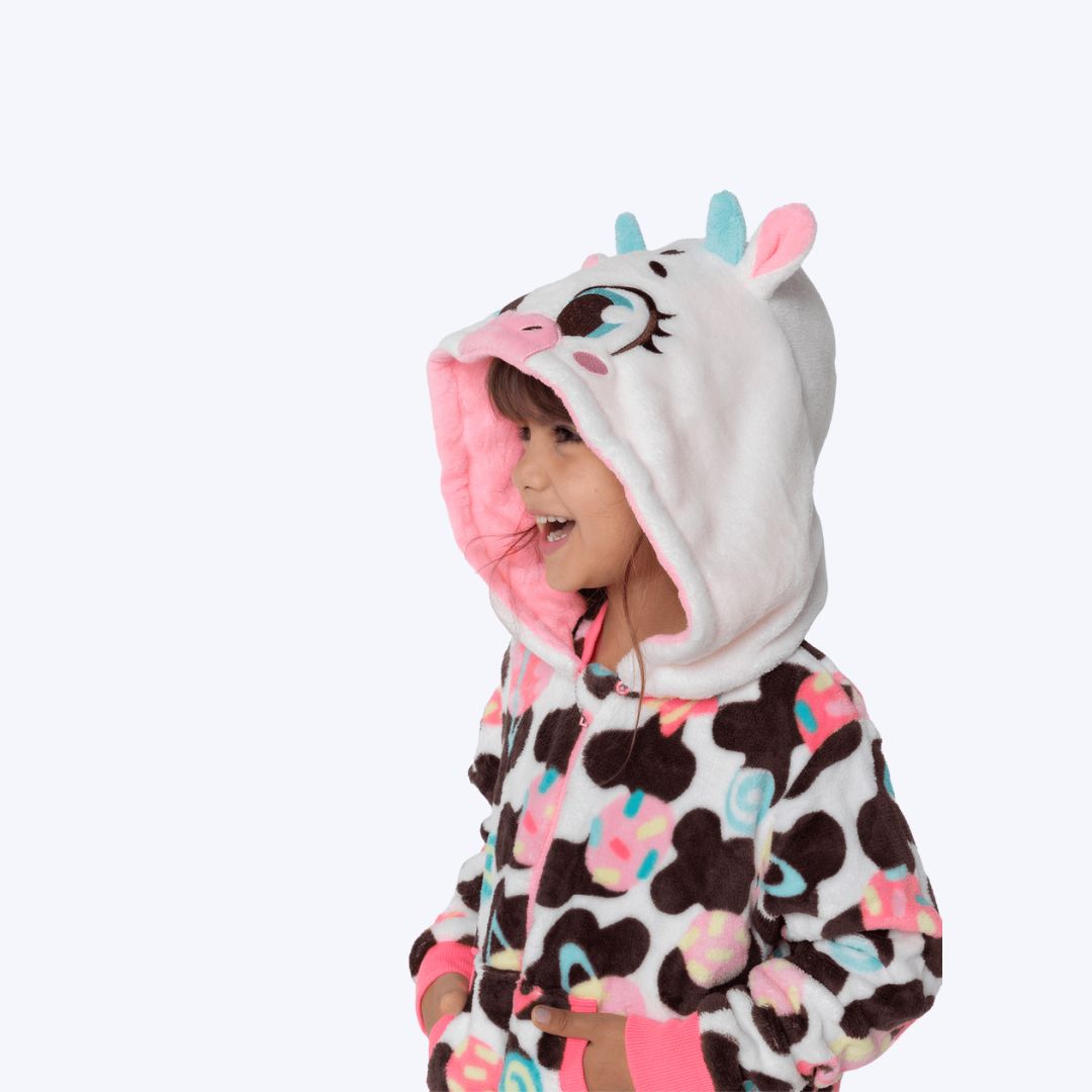 ?Capuz divertido: Bordado com aplique 3D do rostinho da vaquinha, tornando o visual mais fofo.