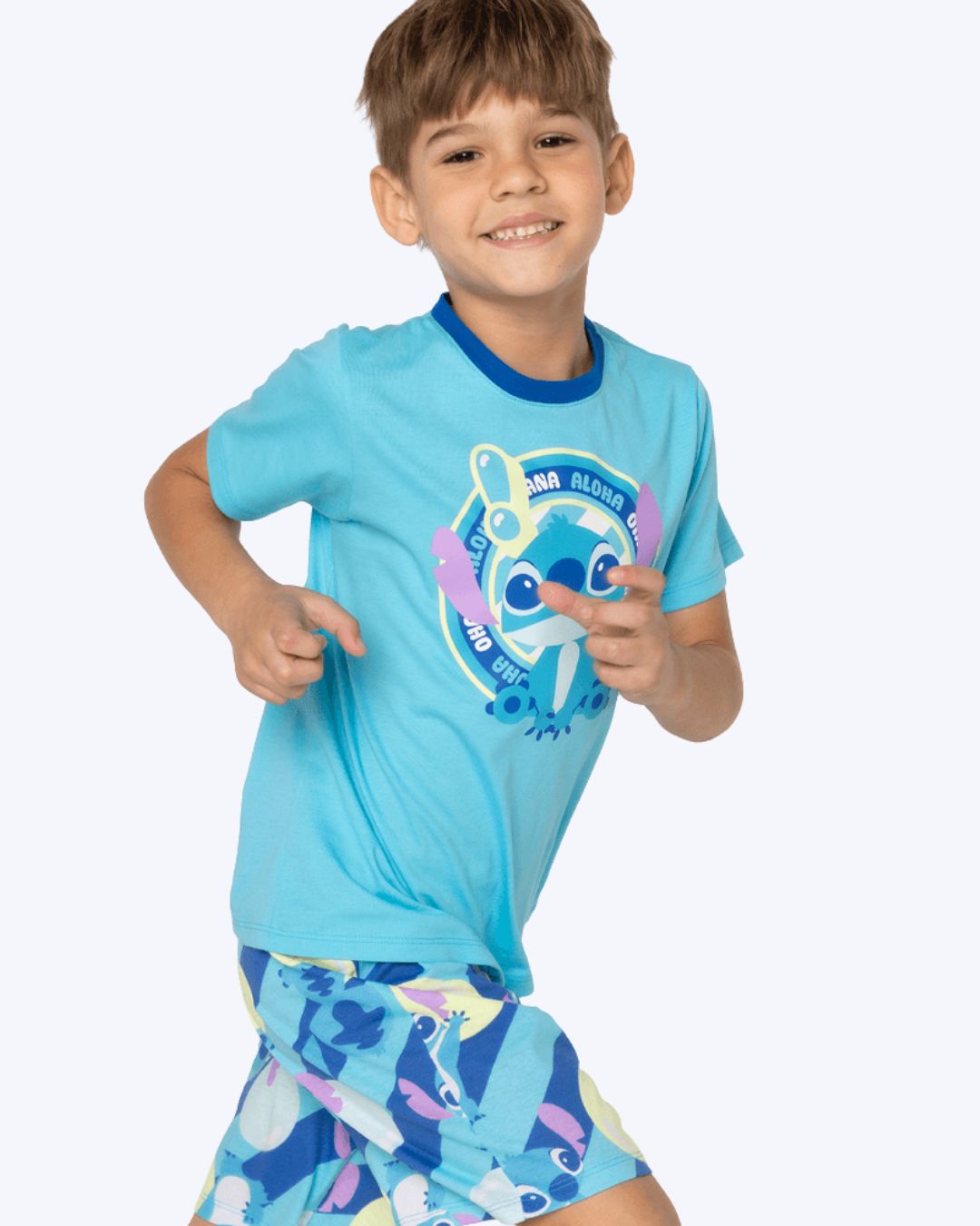 Pijama Manga Curta Algodão Stitch Infantil Masculino Puket