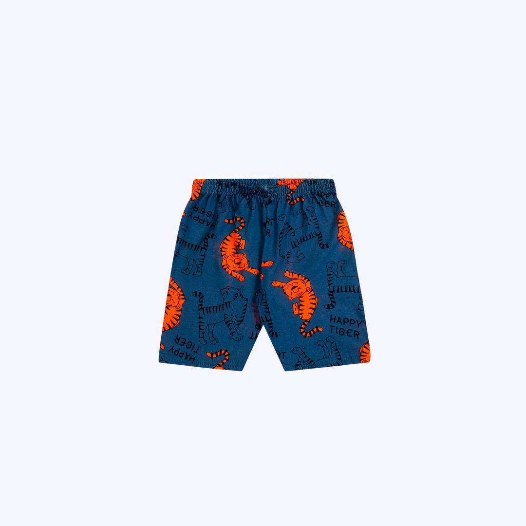 Design Divertido e Moderno: Estampa de tigre com lettering na camiseta e estampa rotativa na bermuda, criando um visual harmônico e inspirador.