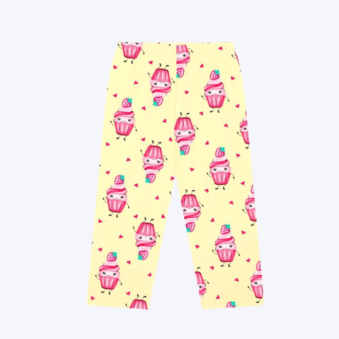 A blusa de manga longa traz uma estampa super fofa de cupcakes, combinada com uma frase em lettering que adiciona ainda mais charme e personalidade à peça. O toque divertido e delicado da estampa transforma o pijama em um verdadeiro convite para a imaginação. Já a calça apresenta uma estampa rotativa de cupcakes, que complementa o visual encantador e deixa o look ainda mais adorável.