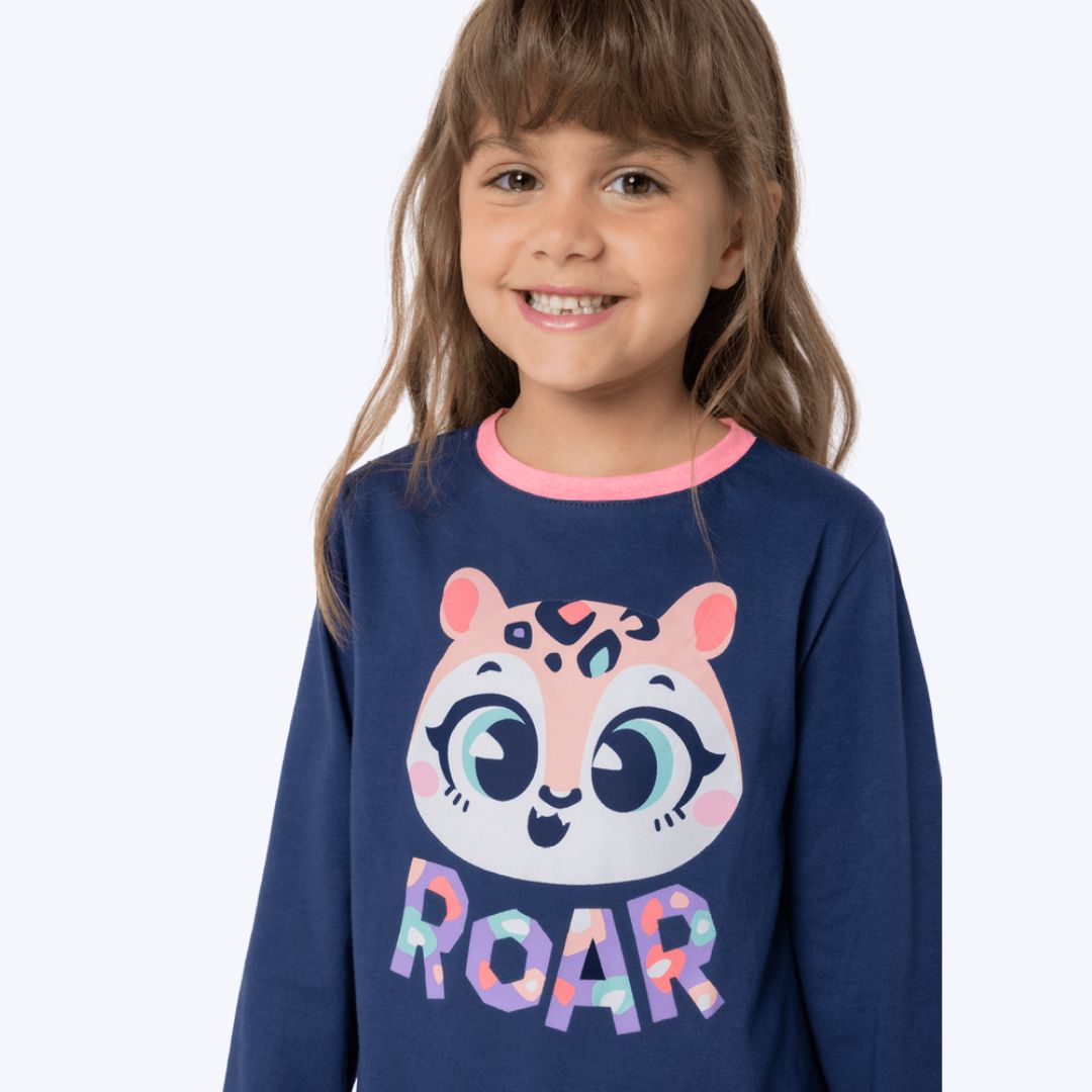 Com o Pijama Manga Longa Onça Infantil Menina Puket, sua menina estará pronta para aproveitar suas noites de descanso ou momentos de lazer em casa com muito estilo e conforto!