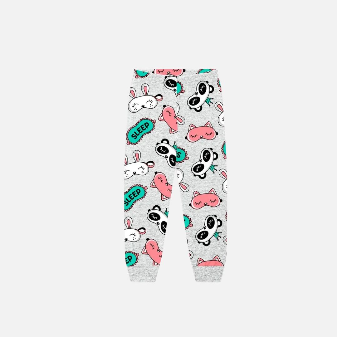 Acompanha calça com estampa alegre de tapa-olhos, cós com elástico confortável e modelagem soltinha, que permite total liberdade de movimentos — ideal tanto para a hora de dormir quanto para os momentos de lazer antes do sono.