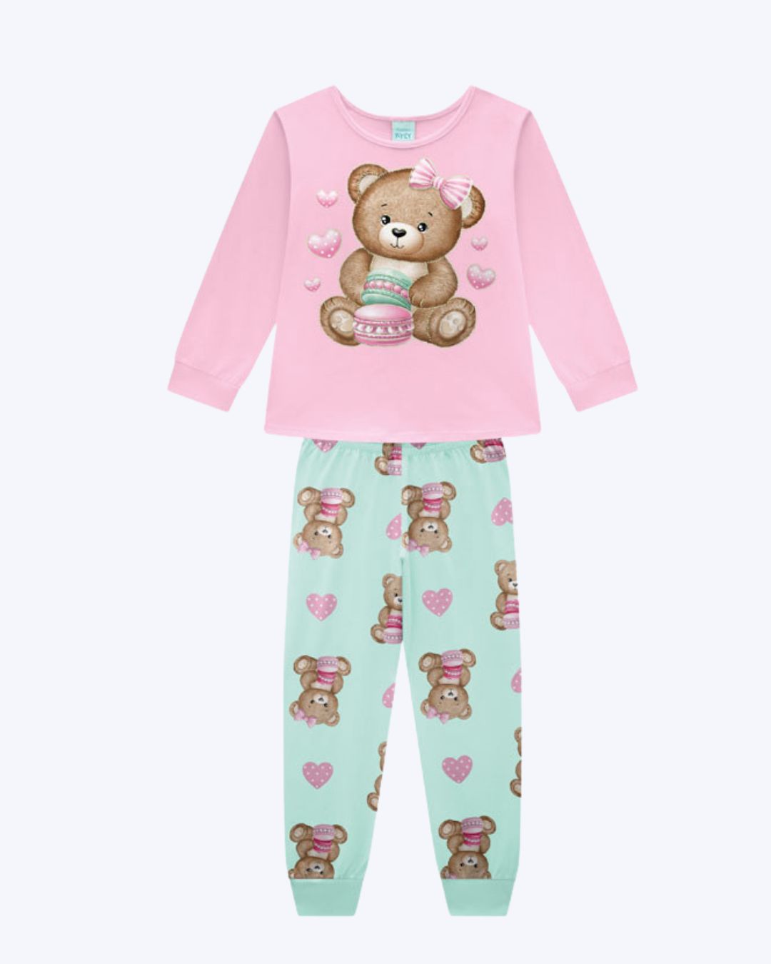Pijama Manga Longa Ursinho Infantil Feminino Kyly