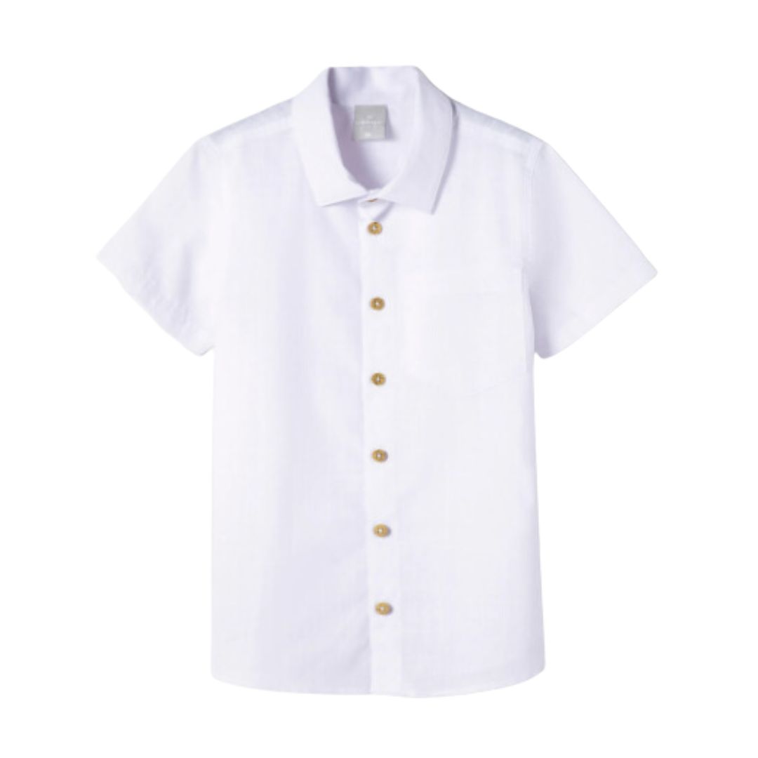 Camisa Branca Infantil Menino Manga Curta em Tecido de Algodão - Elegância e Conforto para os Pequenos!