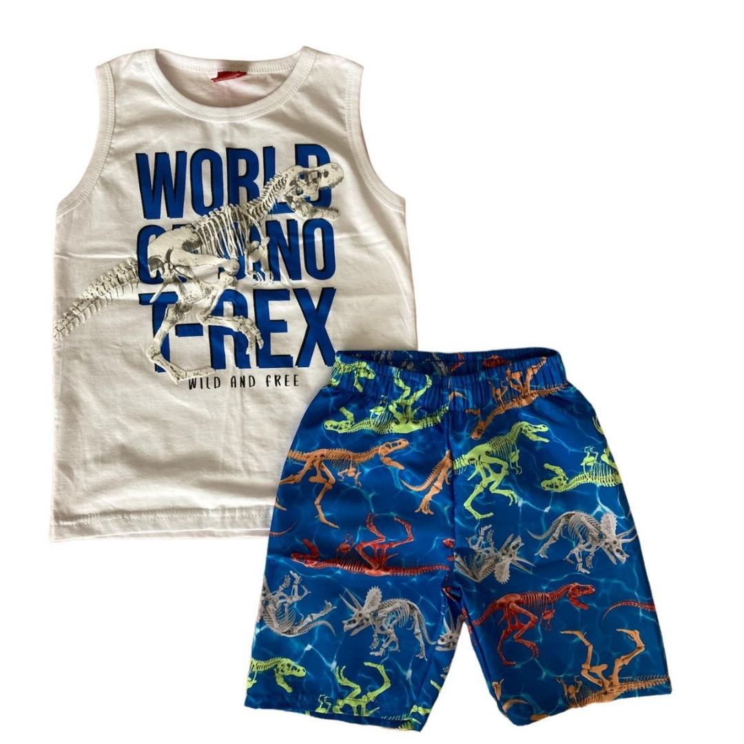 Roupa infantil masculina da marca Kyly, confeccionado com tecido de qualidade, trazendo um conforto maior a criança. Composto por umablusa regata com estampa de esqueleto de dinossauro. Bermuda com elástico no cós, com estampa de esqueleto de dinossauro. Look ideal para os dias mais ensolarados.