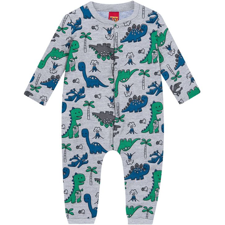 Macacao Bebê Malha Dinossauro Botões Manga Longa Infantil Masculino Kyly 207076