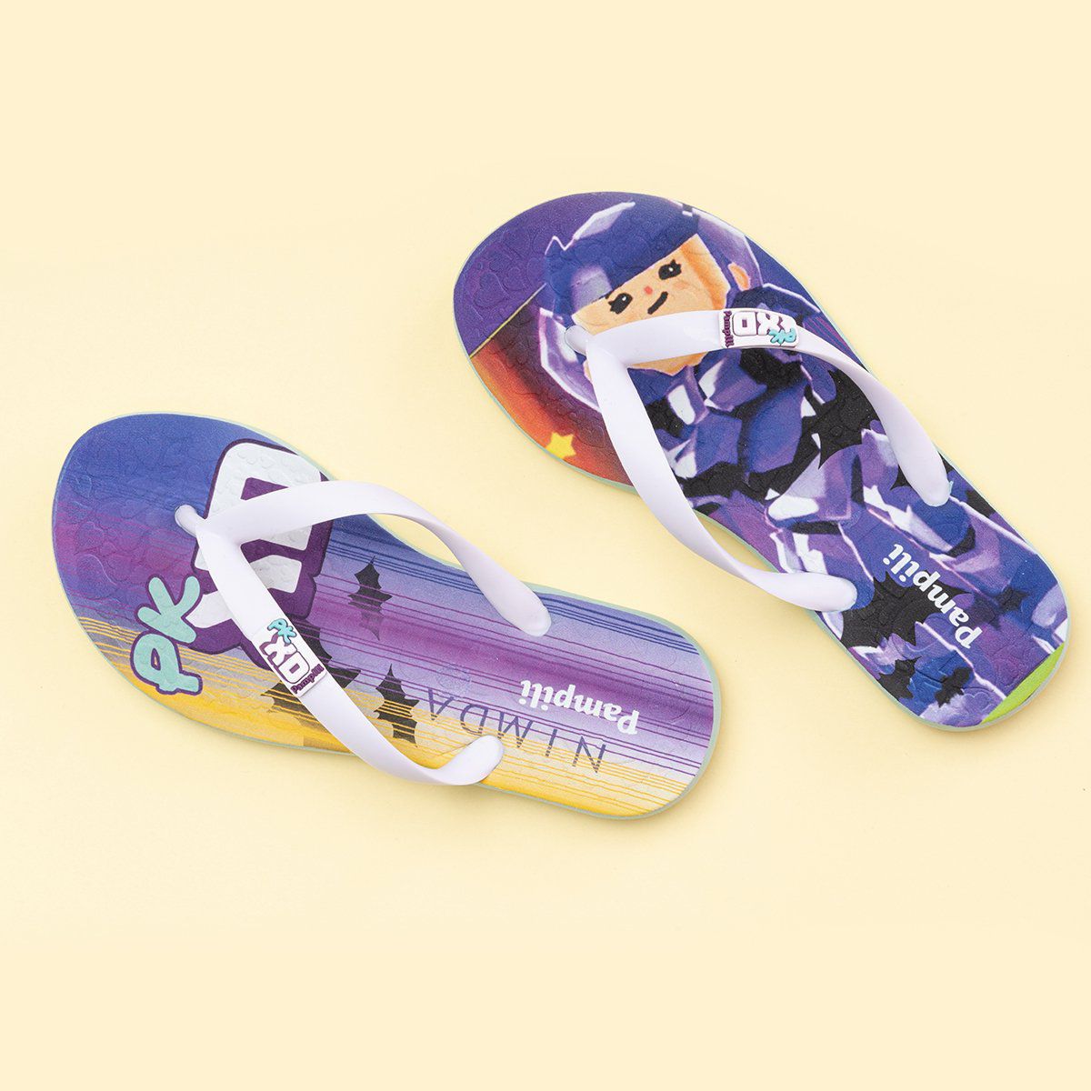 Detalhes: Chinelo em material emborrachado, com alças transparentes e estampas remetendo ao jogo PK XD.