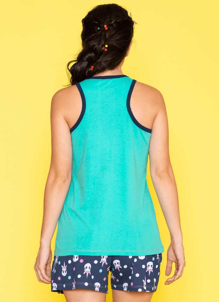 Puket Pijama Short Doll Regata Unicornio Eco 030602041 Cor Verde Agua