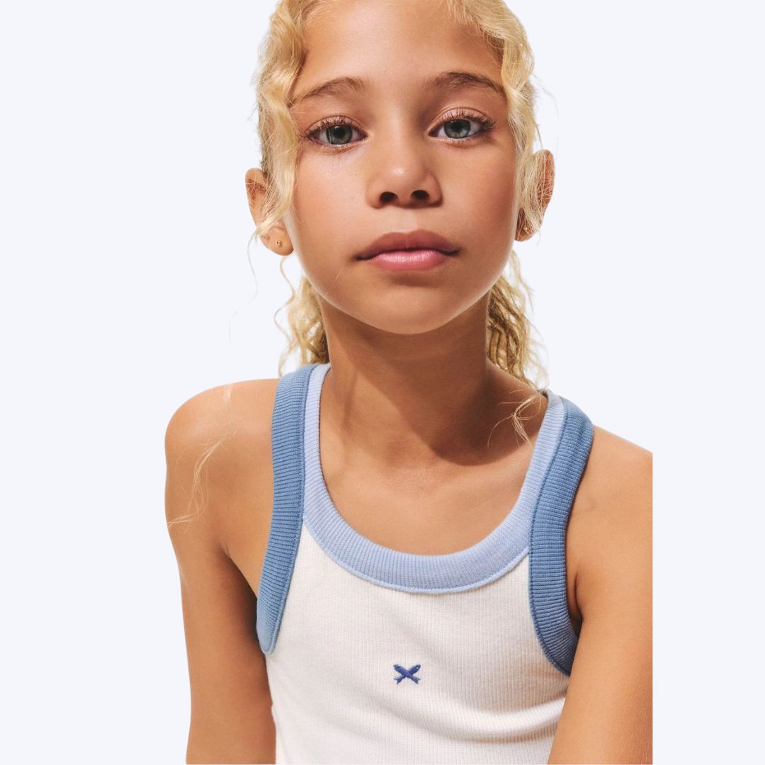A Regata Cropped Em Ribana Infantil Menina é a escolha perfeita para um guarda-roupa infantil moderno e funcional. Com sua modelagem cropped ajustada, esta peça proporciona um visual despojado e acompanha as tendências da moda. O decote redondo e os acabamentos contrastantes no decote e cavas adicionam um toque de estilo e originalidade. Confeccionada em ribana canelada de alta qualidade, a regata garante toque macio, conforto excepcional e flexibilidade para os movimentos das meninas. Além disso, a estampa localizada confere um detalhe exclusivo e charmoso, tornando a peça ainda mais atraente para o público infantil feminino.