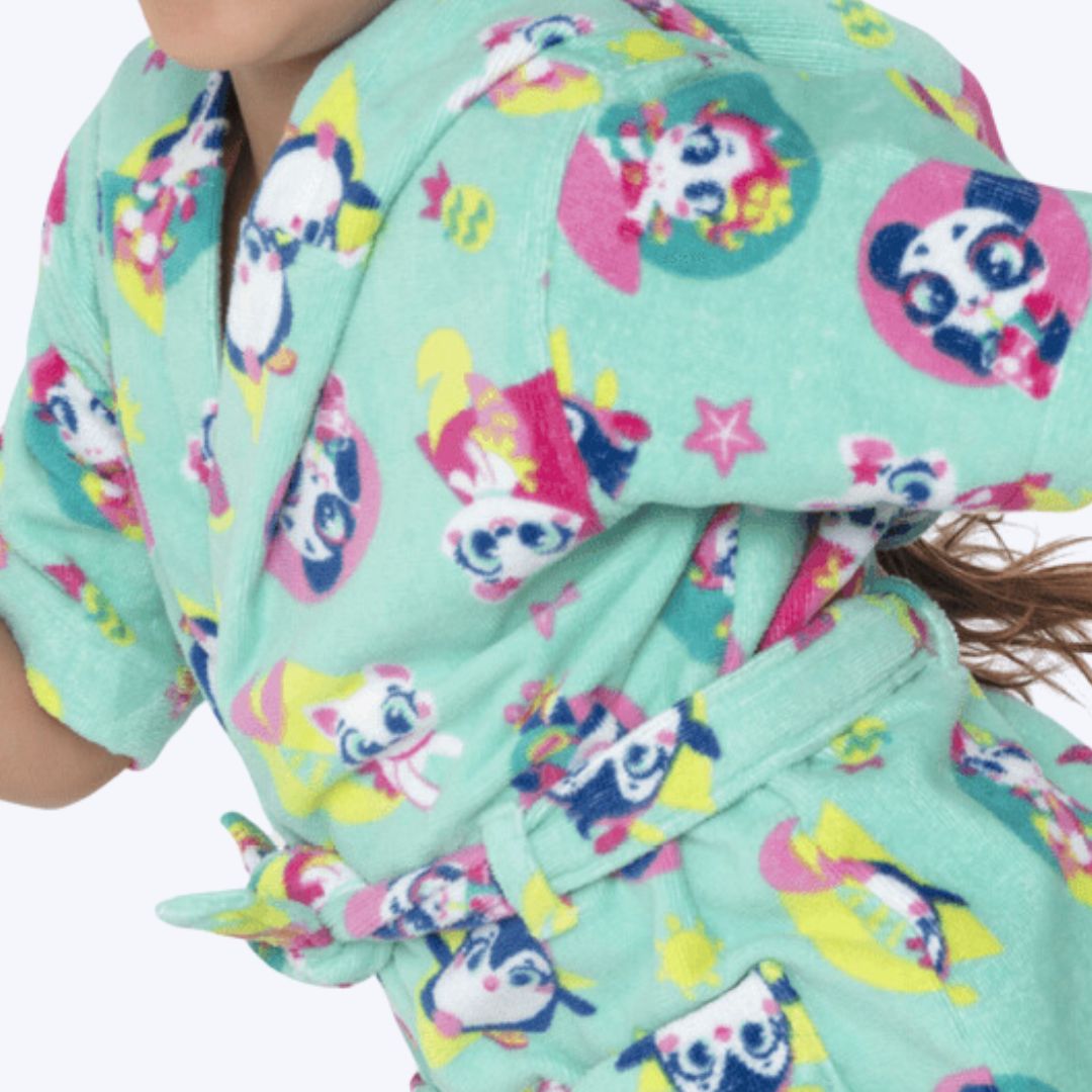 O Roupão de Banho Puket é a escolha perfeita para tornar os momentos pós-banho ainda mais divertidos e confortáveis. Com um design encantador, o roupão apresenta uma estampa rotativa de "multibichos", com cores alegres e vibrantes, que vai conquistar as meninas que adoram se divertir enquanto cuidam da higiene pessoal.