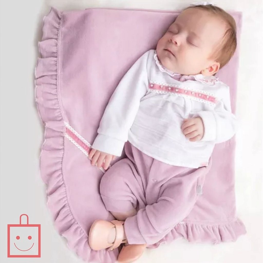 Acompanhando o macacão, a manta é delicadamente bordada com detalhes em fita de veludo, guipir e um laço com plaquinha personalizada, proporcionando um acabamento requintado. Este conjunto é ideal para manter seu bebê quentinho e charmoso durante os dias mais frios.