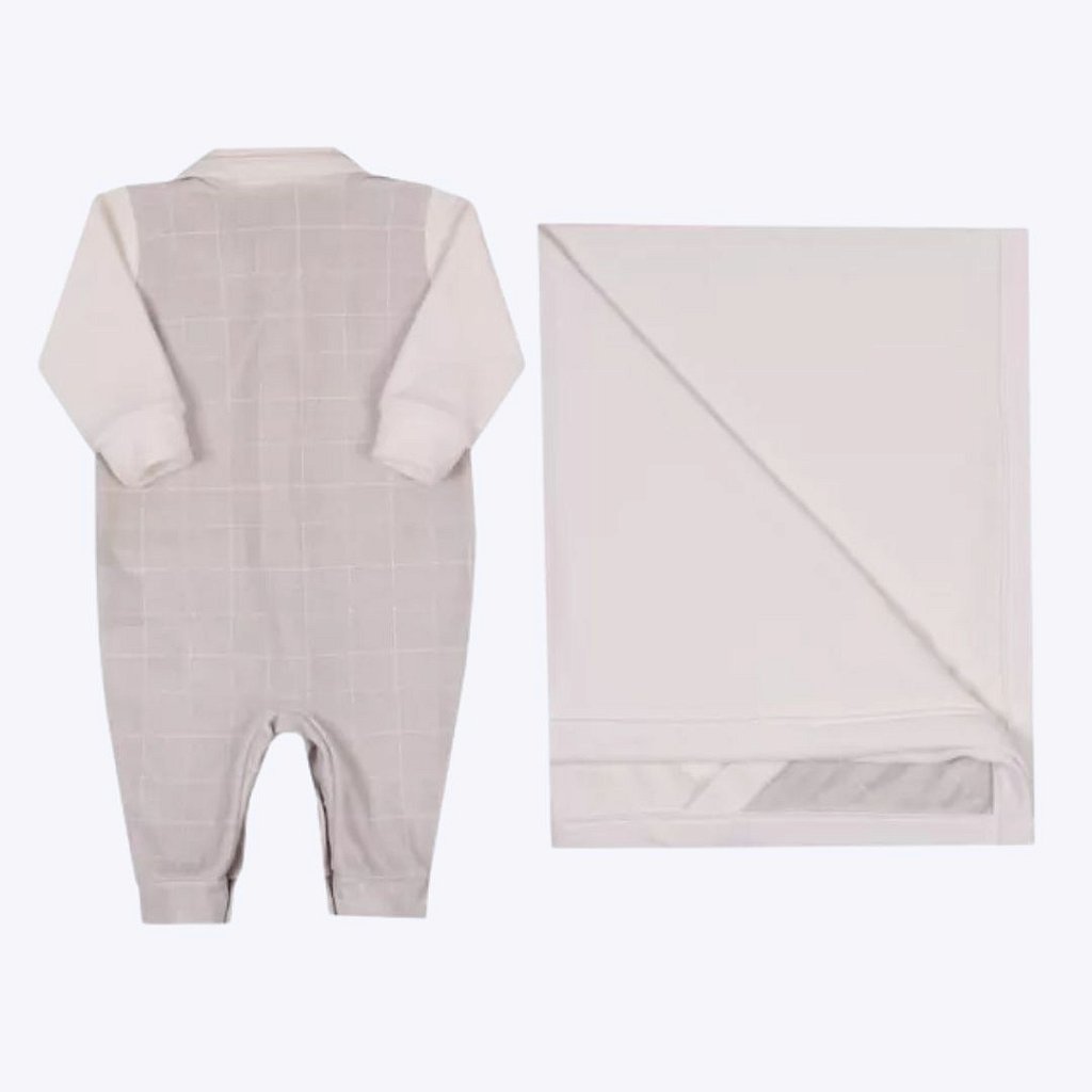 Acompanhando o macacão, a manta em tecido macio (80% Algodão, 20% Poliéster) é delicadamente bordada e possui uma plaquinha, tornando-a uma adorável lembrança desse momento tão especial. Com generosas medidas de 70x80cm, a manta proporciona aconchego e conforto ao seu pequeno tesouro, mantendo-o aquecido e protegido com muito estilo.