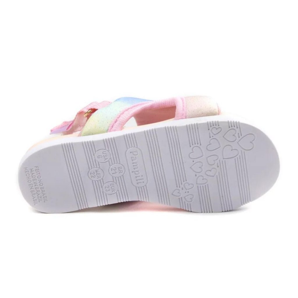 Essa sandália é um doce! Feita em material sintético na parte superior, que abraça os pés e garante muito conforto. O solado em borracha é antiderrapante, para garantir segurança na pisada. A estampa estilo tye dye é uma fofura, mesclando tons de rosa, lilás, azul, amarelo e verde. Na parte traseira há um elástico que garante que o calçado não saia do pé. Perfeita para dar um passeio e acompanhar as pequenas nos primeiros passos.