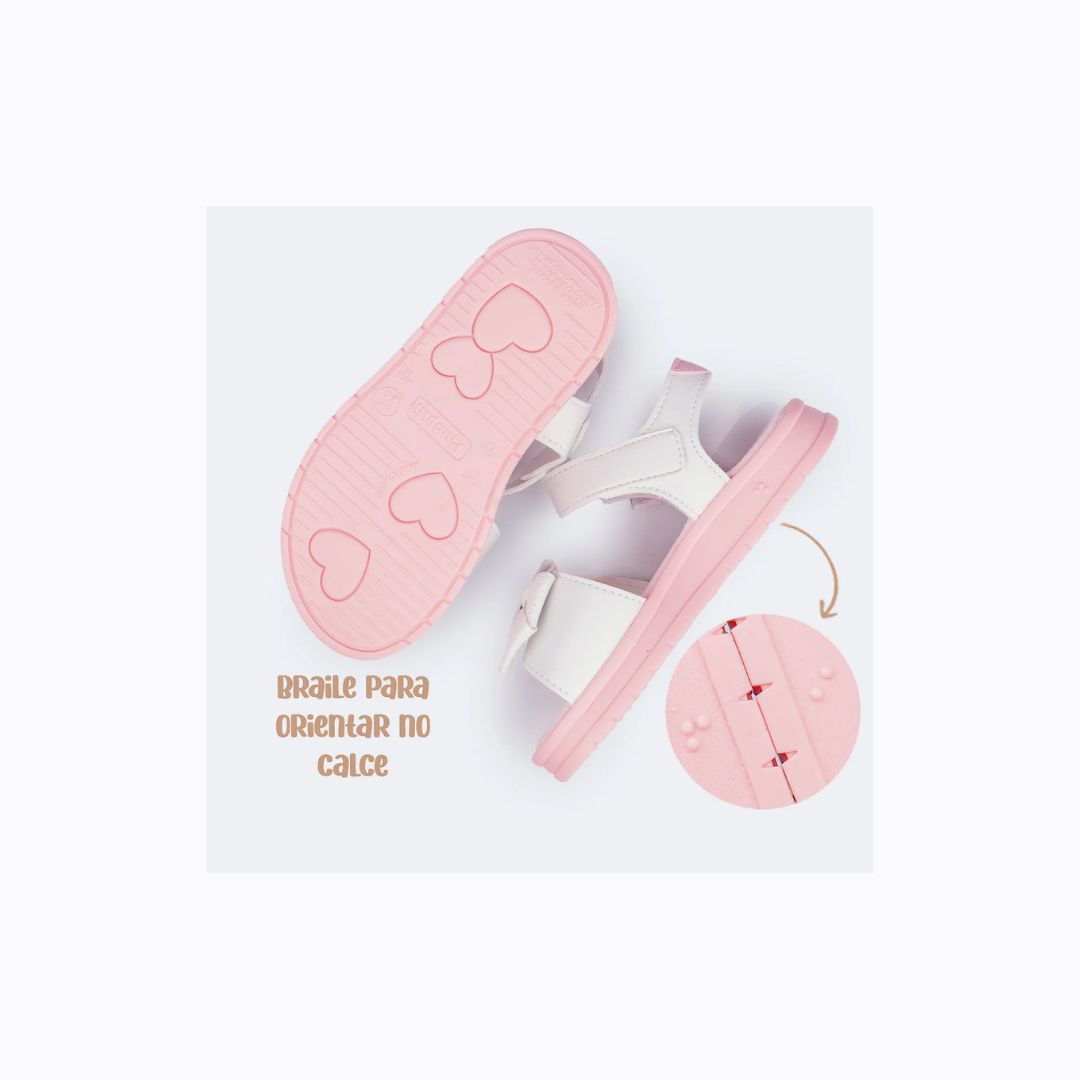 Inclusão e acessibilidade com o recurso em braile presente no solado, um detalhe inovador da Pampili.