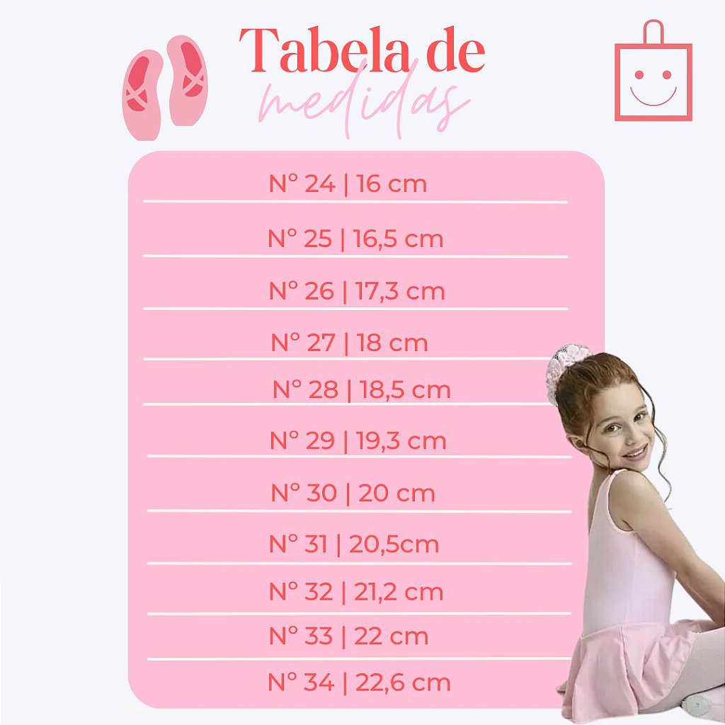 Ideal para apresentações de dança, com esta sapatilha as pequenas irão arrasar em grande estilo na dança clássica. A Sapatilha de Glitter oferece o equilíbrio perfeito entre desempenho e elegância, permitindo que sua pequena bailarina se destaque com confiança em cada movimento.