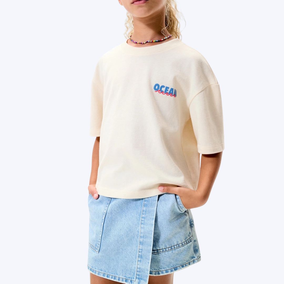 Lavagem levemente estonada e barra desfiada, proporcionando um visual despojado e alinhado às tendências da moda infantil.