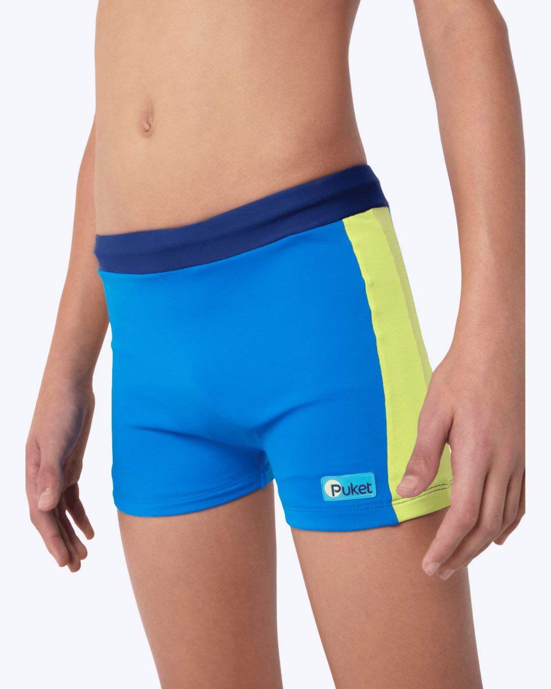 Sunga boxer teen. Possui lateral sem costura com cores contrastantes, elástico embutido no cós e cordão interno para ajuste de tamanho.