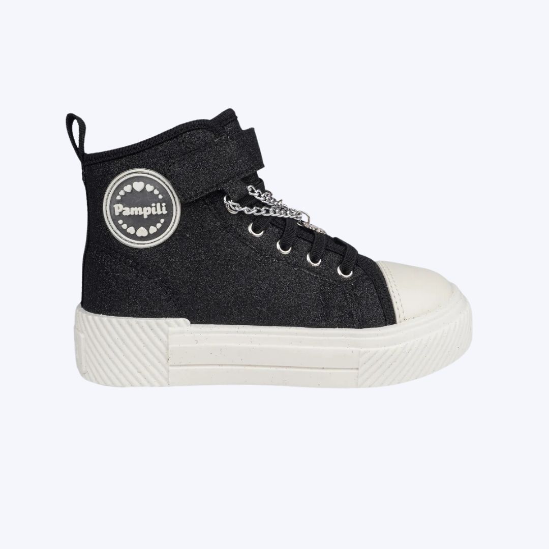 Tênis cano médio feminino em glitter preto com correntinha e pingente exclusivo para as meninas customizarem e usar como preferir, além do detalhe emborrachado na lateral, ideal para as meninas que adoram caminhar com estilo! Tênis com forro interno comfy que auxilia na absorção do suor e dá conforto ao calce. Palmilha Feet Care que possui um sistema avançado de fofura, com a densidade ideal para os pés, minimizando impactos. Fechamento em fita autocolante e elástico, para um calce fácil. Solado em material micro expandido, leve com muita aderência e estabilidade, além da flexibilidade, resistência térmica e alto desempenho antiderrapante. O tênis possuí escrita em braile indicando os lados direito e esquerdo para auxiliar as meninas com deficiência visual e com baixa visão ao calçar!