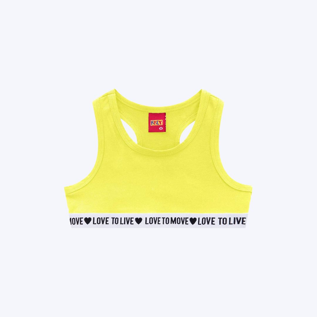 Com um visual moderno e delicado, o top traz detalhe franzido com escrita na barra, além de acabamento reforçado nas alças com debrum e costas no estilo nadador, que oferece melhor sustentação e caimento anatômico.