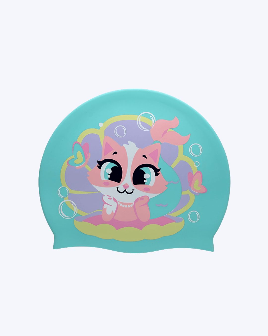Touca de natação com estampa de sereia em ambos os lados. Cor: verde água Material: 100% silicone Diferencial do produto: estampa em ambos os lados; conforto; não puxa o cabelo; Ocasião de uso: Ideal para usar praia e piscina Como lavar e conservar bem meu produto: Lave suavemente com agua limpa e fria após o uso deixando secar a sombra. Não esfregue ou passe pano na estampa, para não danifica-la. Evite deixar o produto exposto ao sol após o uso.