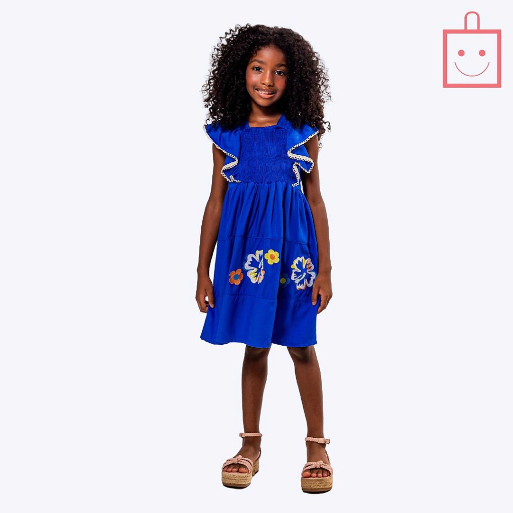 Garanta que sua filha brilhe em qualquer evento com o vestido azul bordado de flor da Vigat, onde o estilo e a delicadeza se encontram em uma peça incrível!