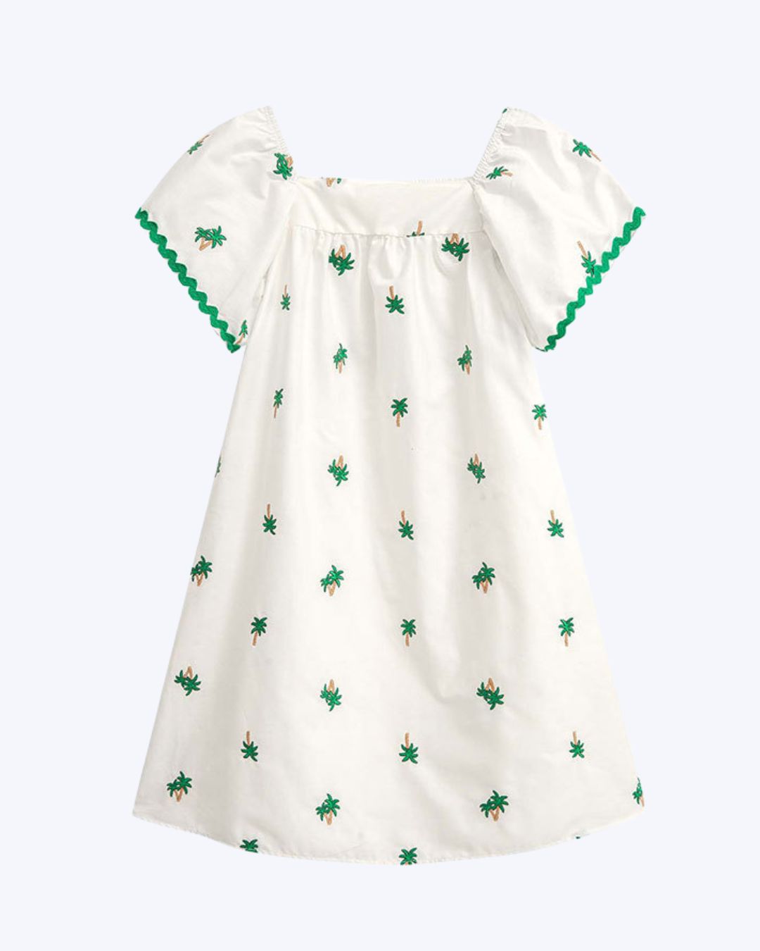 Design exclusivo com bordado de coqueiros e mangas volumosas, adicionando um toque tropical e elegante que se destaca em qualquer evento.