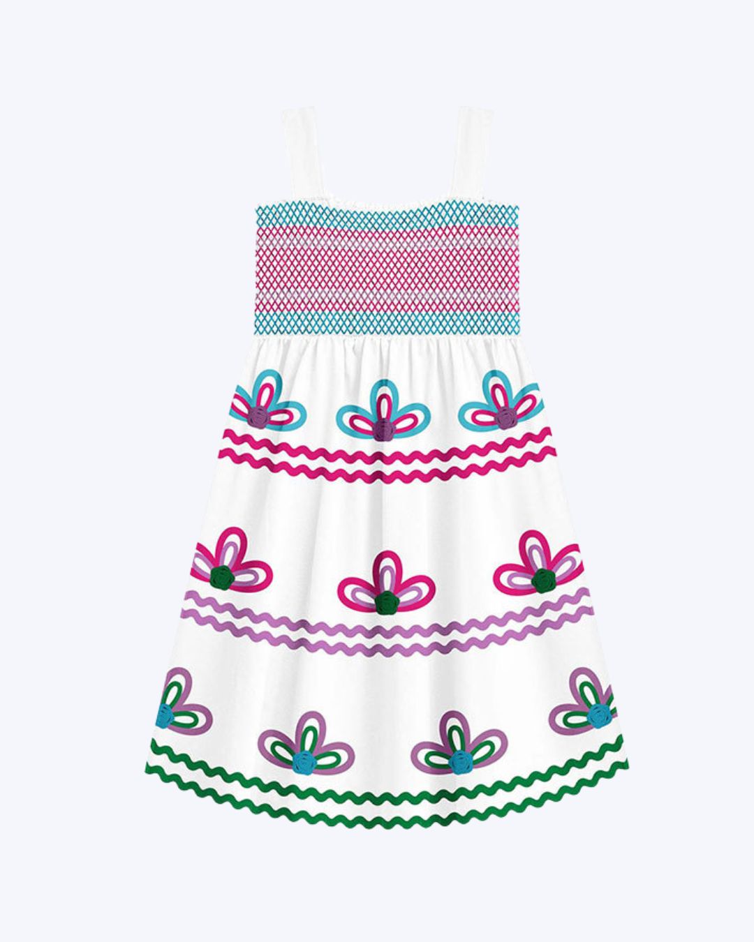 Vestido Branco Desenho Flor Infantil Feminino Nanai