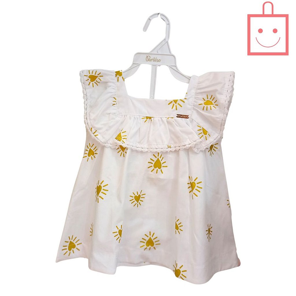 Vestido Branco Estampa Bate Coração Bebê Menina Precoce