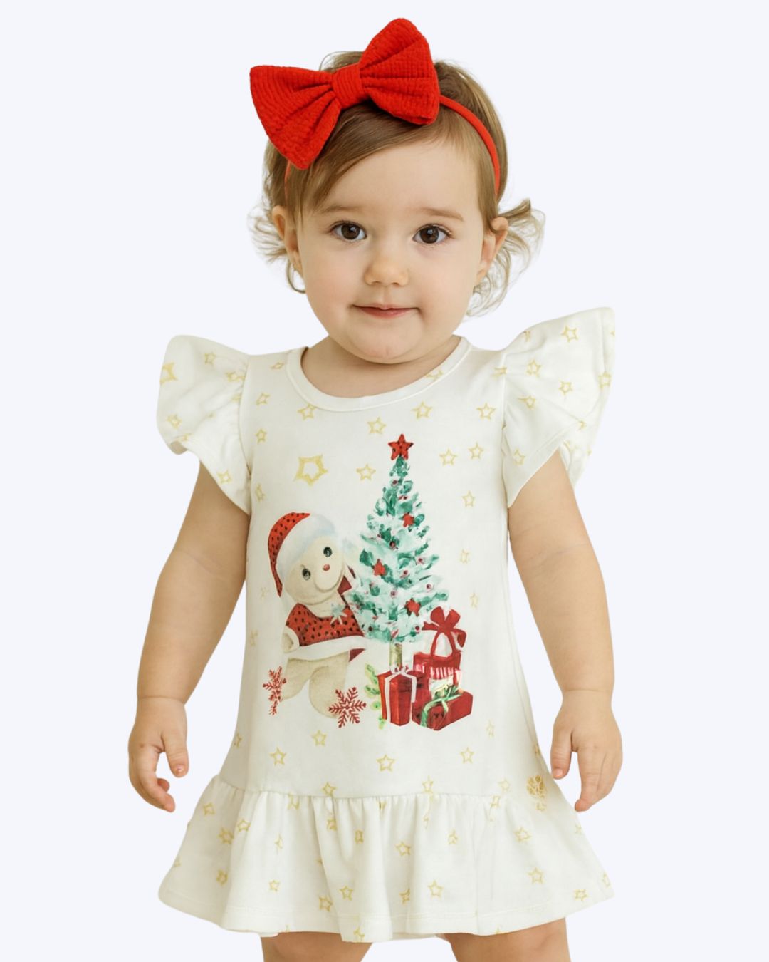 O Vestido Branco Natalino Anjos Baby é uma peça versátil e indispensável no guarda-roupa do bebê, projetado para oferecer o máximo de liberdade de movimento enquanto a criança brinca e se diverte.