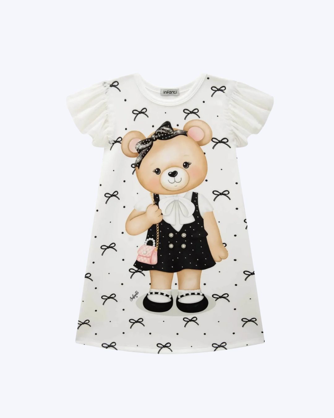 Disponível em diversas tamanhos, o Vestido Ursinha Infanti se adapta a diferentes idades, proporcionando um ajuste ideal.