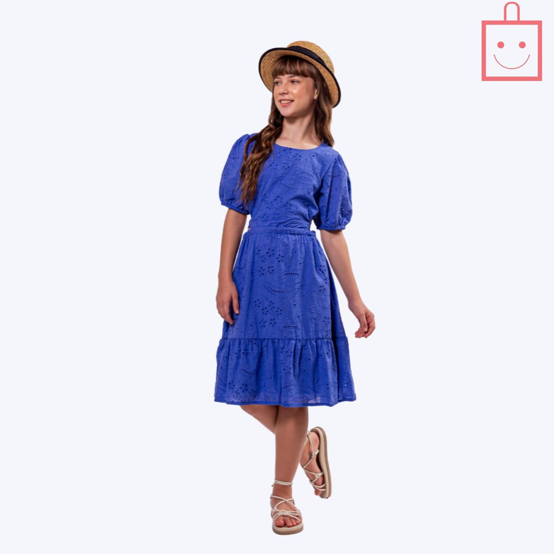 Vestido em Laise Azul Juvenil Menina Vigat 7861