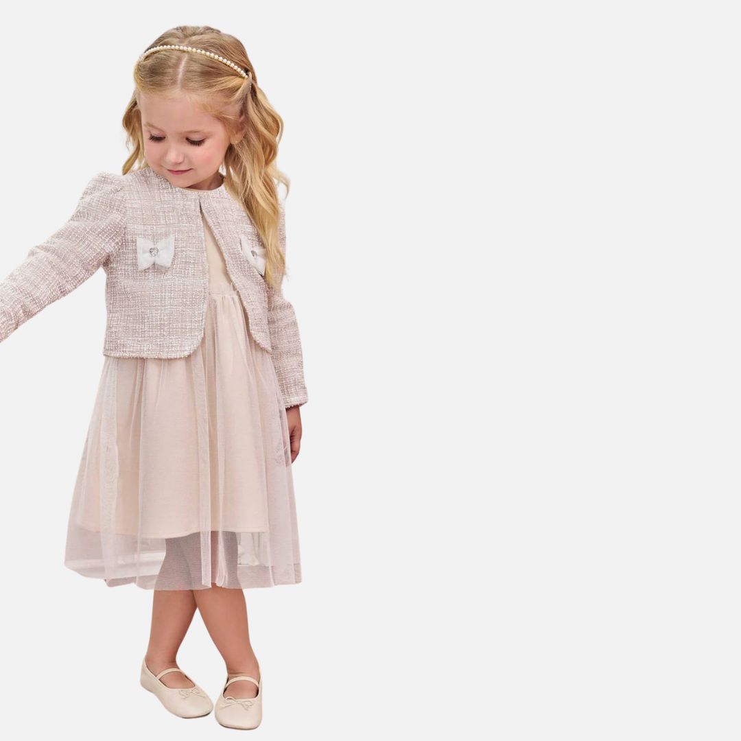 ?Vestido Infantil Feminino com Tule e Bolero – Coleção Inverno 2025