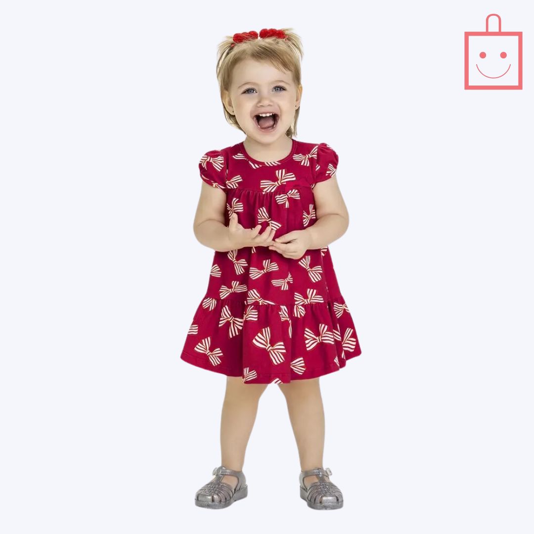 A barra com bainha finaliza a peça com delicadeza, garantindo um acabamento perfeito e confortável para as pequenas. Disponível nas cores vermelho e branco, o vestido é versátil e pode ser usado em diversas ocasiões, desde festas de aniversário e encontros familiares até passeios ao ar livre ou momentos de lazer.