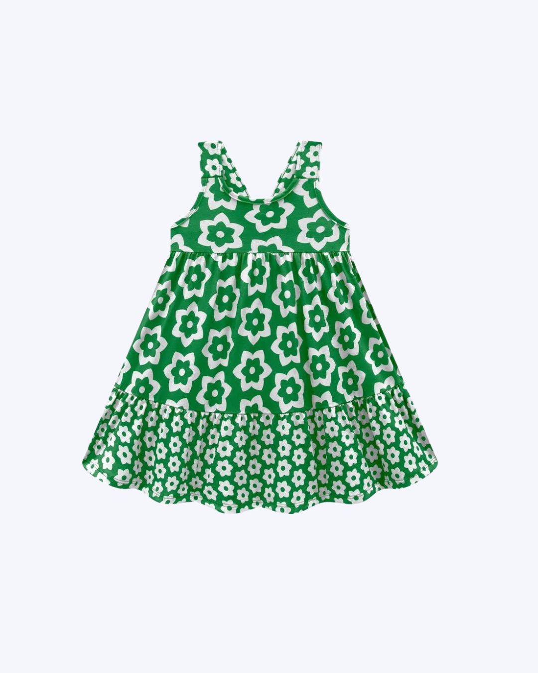 Confeccionado em meia malha 100% algodão, este vestido infantil Kyly garante conforto, respirabilidade e um toque suave na pele delicada das meninas. Sua modelagem evasê com recorte franzido na barra proporciona leveza e movimento, criando um caimento gracioso ideal para os dias mais alegres da infância. A estampa rotativa de flores, com um lindo contraste entre flores grandes e pequenas nas cores verde, vermelho e azul-marinho, confere um visual harmônico e cheio de personalidade. Perfeito para passeios, festas e momentos ao ar livre, este vestidinho é a combinação ideal de conforto e fofura para a primavera e o verão.