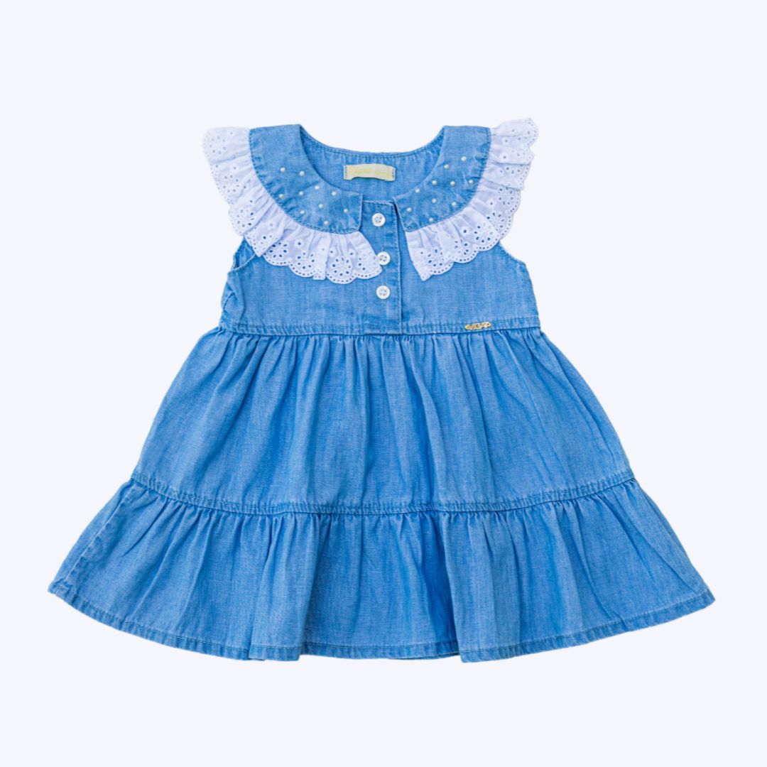 Este encantador Vestido Jeans Bebê Menina Vigat é a escolha perfeita para ocasiões especiais ou para o dia a dia, combinando estilo, conforto e delicadeza. Confeccionado em jeans de alta qualidade, na cor azul clarinho, o vestido traz um toque de leveza e suavidade, ideal para a pele sensível das pequenas.