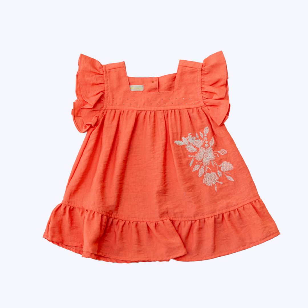 Vestido Laranja Manga Curta Bordado Bebê Menina Vigat