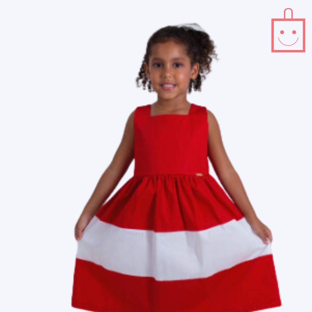 Vestido Liso Vermelho e Branco Infantil Menina Precoce