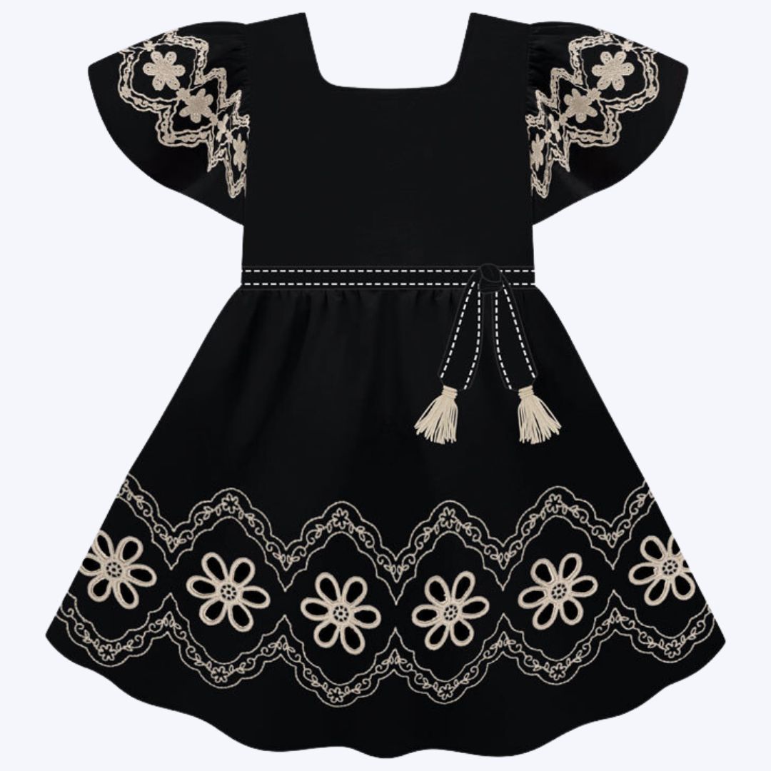 Este encantador vestido da Milon é a escolha perfeita para ocasiões especiais ou para um visual adorável no dia a dia. Com um design delicado e elegante, o vestido apresenta manga curta e gola redonda, proporcionando um ajuste confortável e estiloso. Os detalhes são o destaque: o babado na parte inferior e as mangas são adornados com um bordado de flores sofisticado, que adiciona um toque de charme e feminilidade. Na cintura, um laço delicado completa o look, realçando a silhueta com um toque de graça. Disponível nas cores preto e rosa, este vestido combina facilmente com diferentes acessórios e sapatos, permitindo várias opções de estilo.