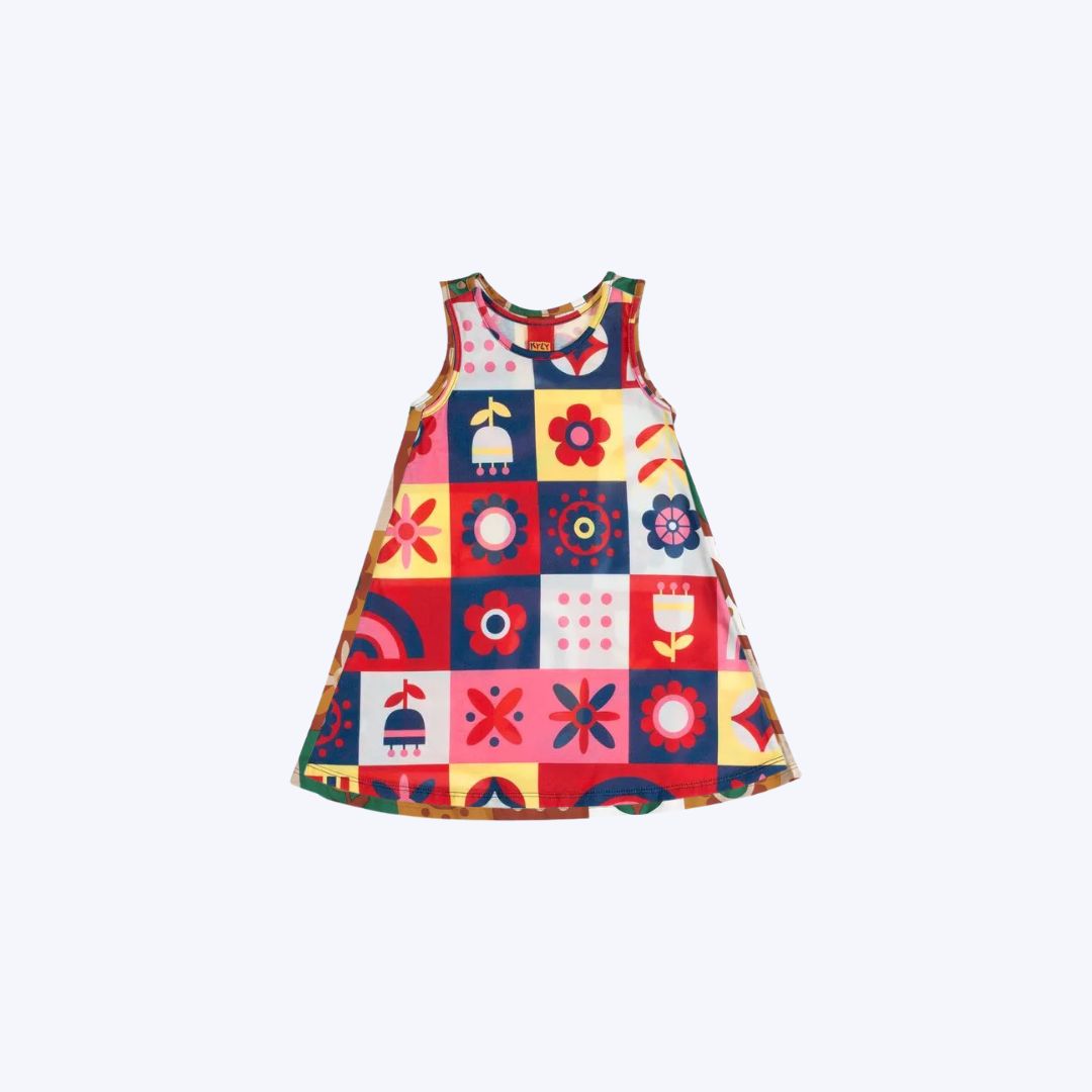 O Vestido Infantil Menina Kyly de manga curta é a escolha ideal para unir conforto e estilo no guarda-roupa da sua pequena. Confeccionado em meia malha 100% algodão, este vestido proporciona um toque suave, excelente respirabilidade e uma leveza inigualável, garantindo bem-estar durante todo o dia. Seu caimento soltinho foi pensado para favorecer a liberdade de movimento e conferir fluidez à peça. O grande destaque é a vibrante estampa de flores em blocos geométricos multicoloridos, que adiciona um toque moderno, divertido e repleto de personalidade, transformando o vestido em um verdadeiro jardim gráfico de cores e formas. Este vestido Kyly é perfeito para iluminar qualquer ocasião com encanto e originalidade.