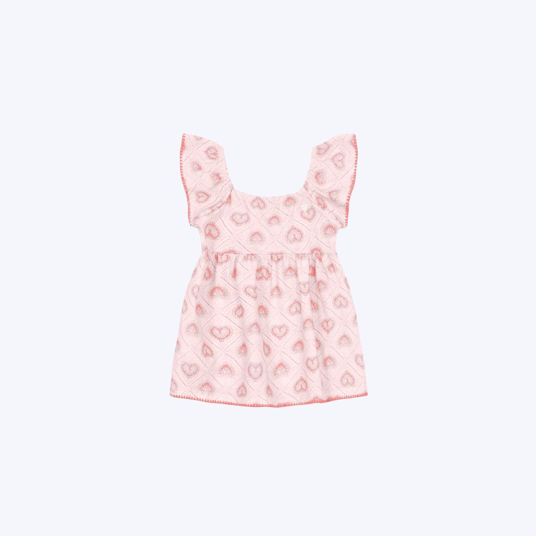 Um vestido encantador e confortável da Brandili, perfeito para as pequenas com sua delicada estampa de corações.