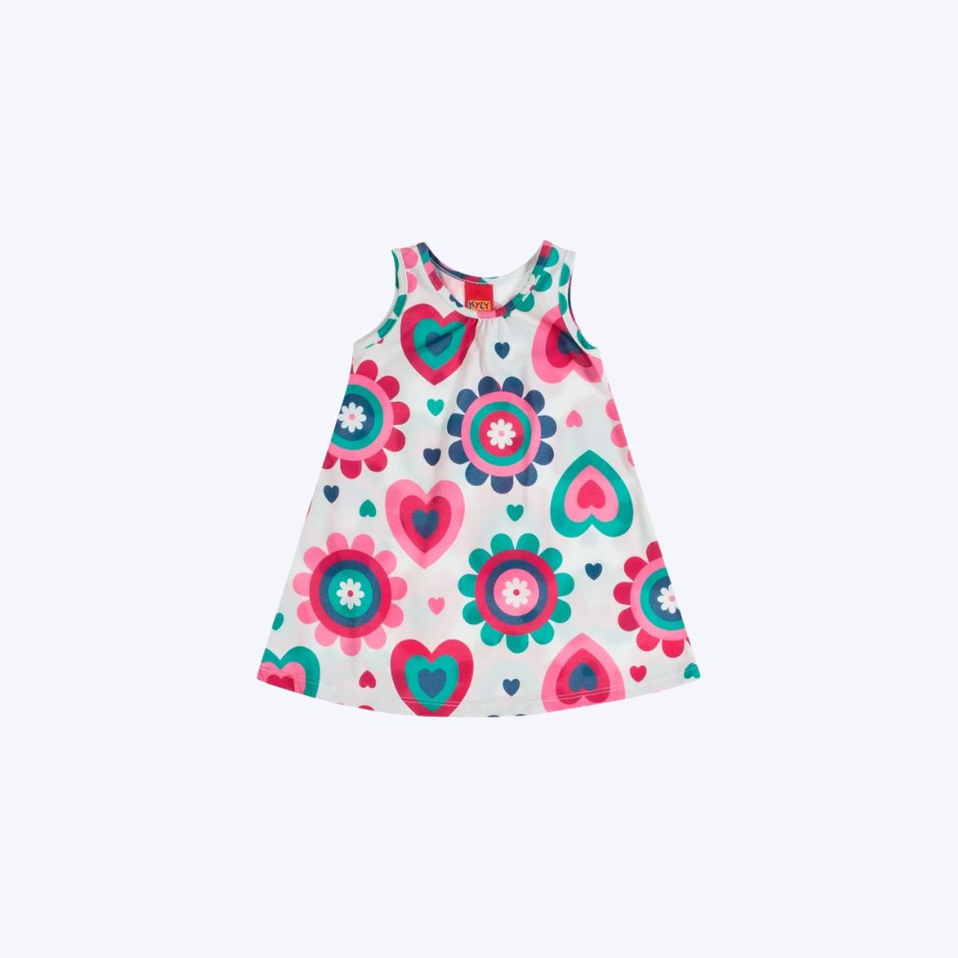 O Vestido Manga Curta Flores é a escolha ideal para adicionar estilo e conforto ao guarda-roupa da sua filha. Com sua modelagem de manga curta e tecido leve, ele proporciona total liberdade de movimentos, sendo perfeito para todas as brincadeiras. A estampa rotativa exclusiva, com flores delicadas e corações coloridos, cria um visual divertido e encantador. Disponível nas cores branco, azul marinho e rosa, este vestido infantil é versátil para passeios, festas ou momentos especiais em família, combinando beleza e praticidade para a moda infantil feminina.